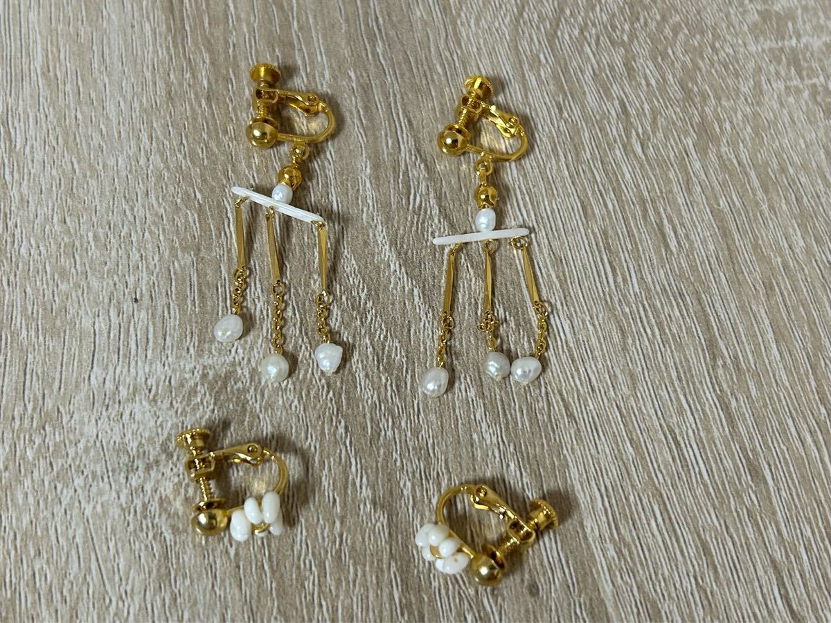 - ⑩●天然 珊瑚 イヤリング セット● サンゴ パール フラワー 花 ゴールド プレゼントに♪ アクセサリー
