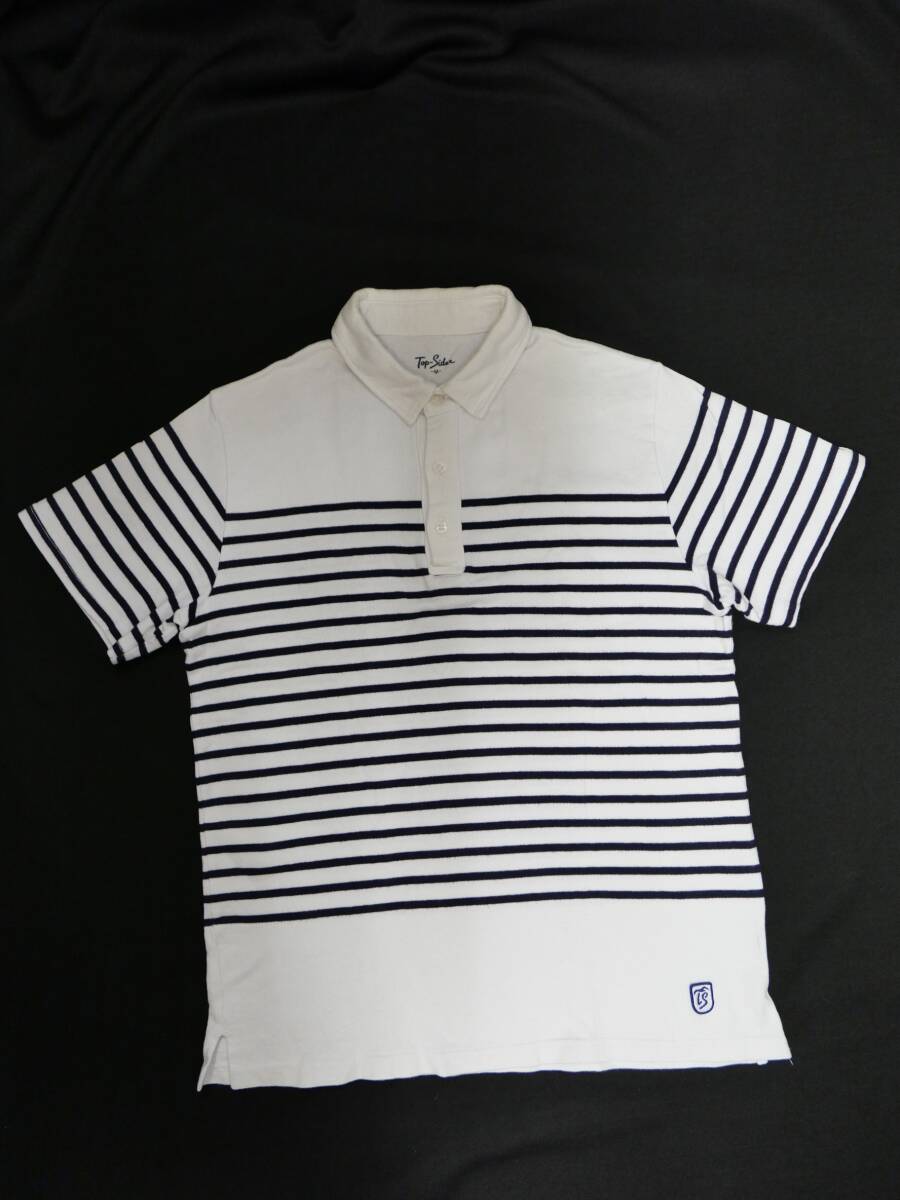 - TOP Sider ポロシャツ 白 ネイビー ボーダー M かわいい 中古 USED 男子 メンズ トップス
