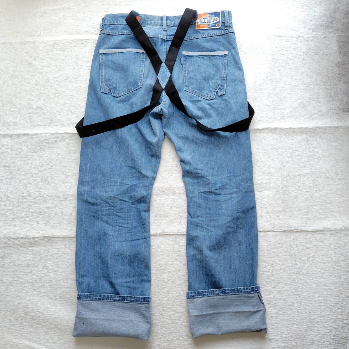 - MAGIC NUMBER マジック ナンバー デニム サスペンダー ジーンズ 淡色 メンズW34 86㎝ 250527-01