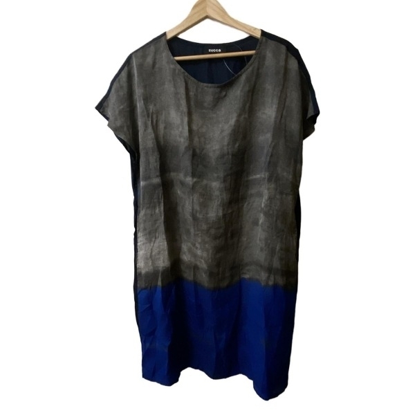 - ズッカ ZUCCA サイズM - ダークグレー×ブルー×ダークネイビー レディース クルーネック/半袖/ひざ丈 ワンピース