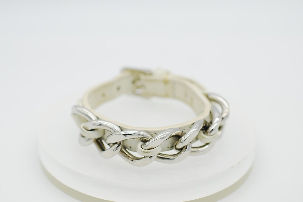 - ■【YS-1M】 バーバリー BURBERRY ブレスレット ■ ベルトモチーフ レザー ホワイト系 × シルバー系 全長約22cm 【同梱可能商品】■C