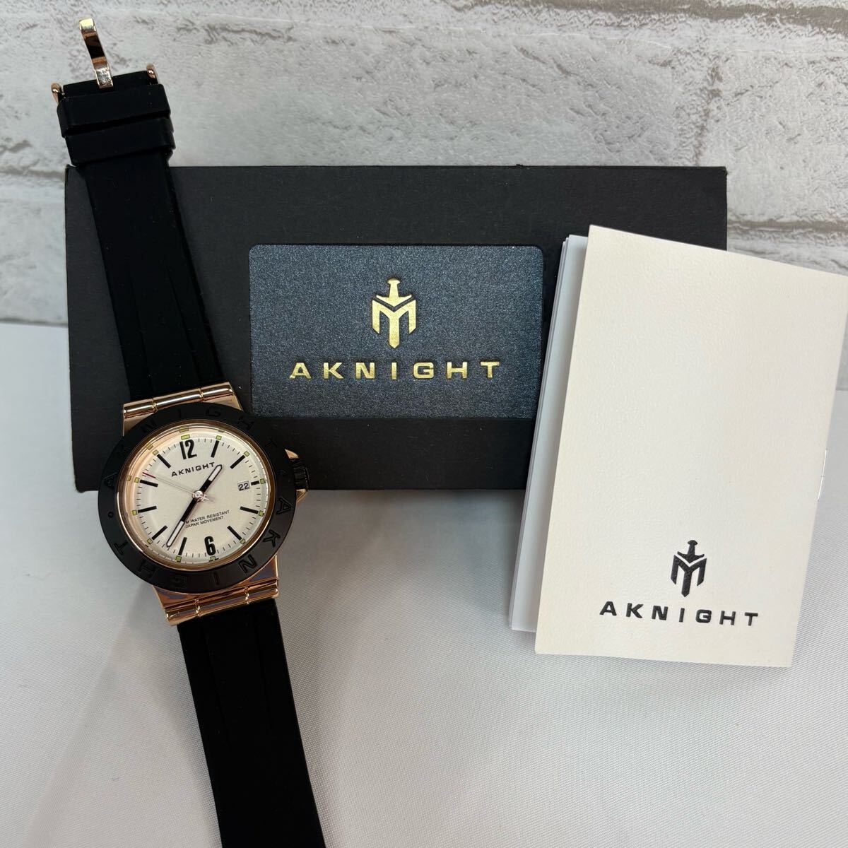 - 【稼働品】AKNIGHT メンズ 腕時計 ボックス ブラック×ゴールド系
