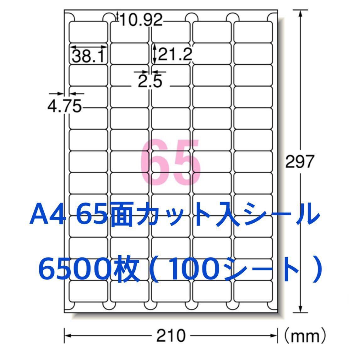 - マルチプリンタ対応☆A4サイズ 100シート☆65面 使いやすいカット入 ラベルシール☆枚数たっぷり 6500枚