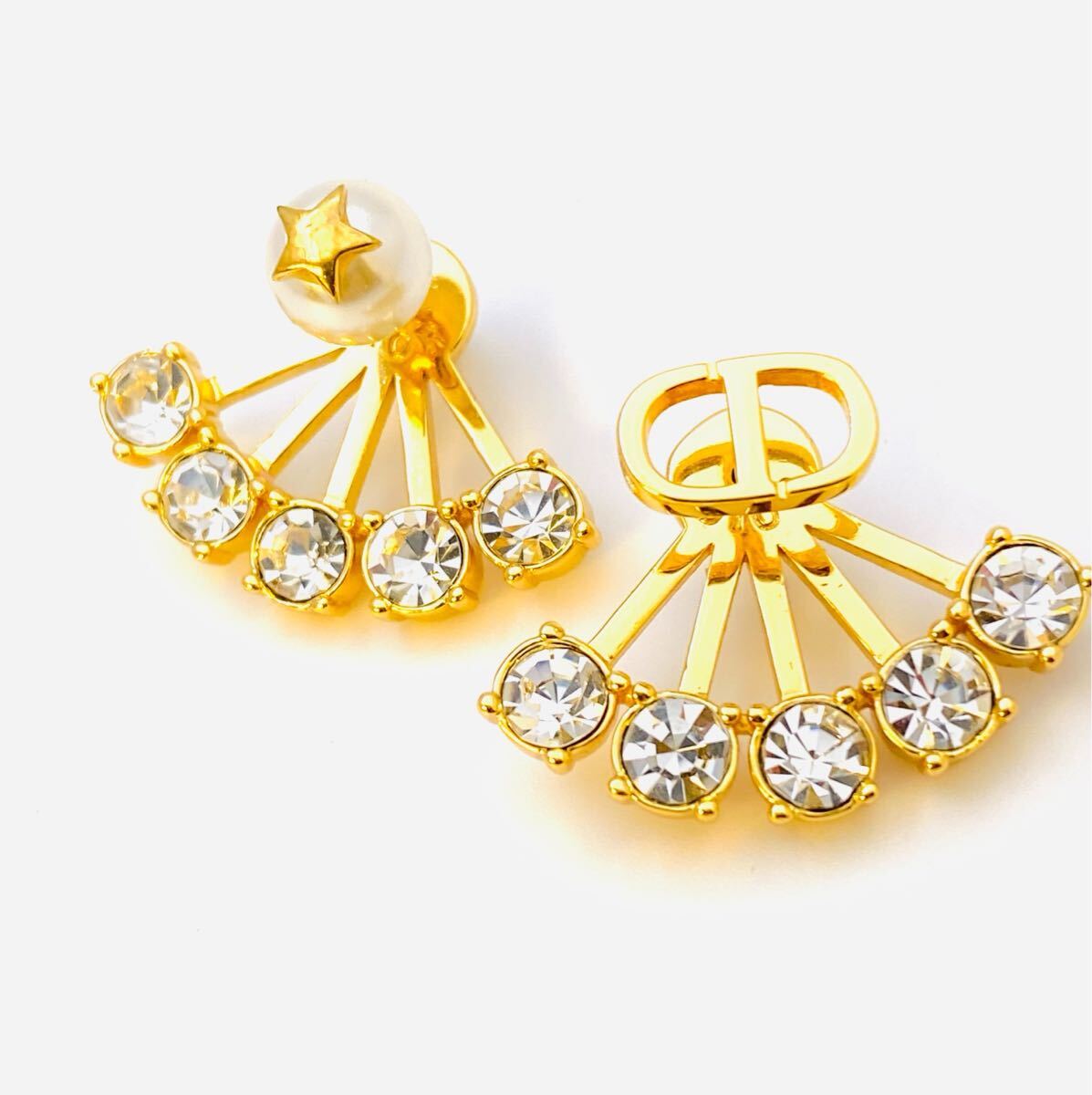 - 極美品・試着 定価10万 Christian Dior ディオール CDロゴ&パール調 クリスタルピアス10 ゴールドカラー