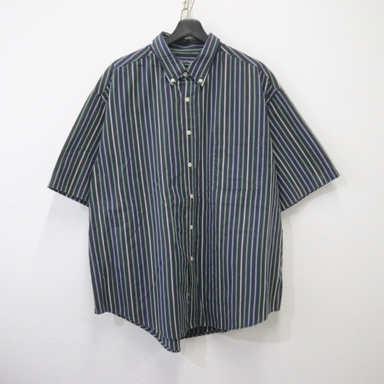 - Z461 90sビンテージ ピューリタン 半袖シャツ■1990年代製 XLサイズ ネイビー 紺 コットン ポリエステル ボタンダウン ストライプ 80s 70s