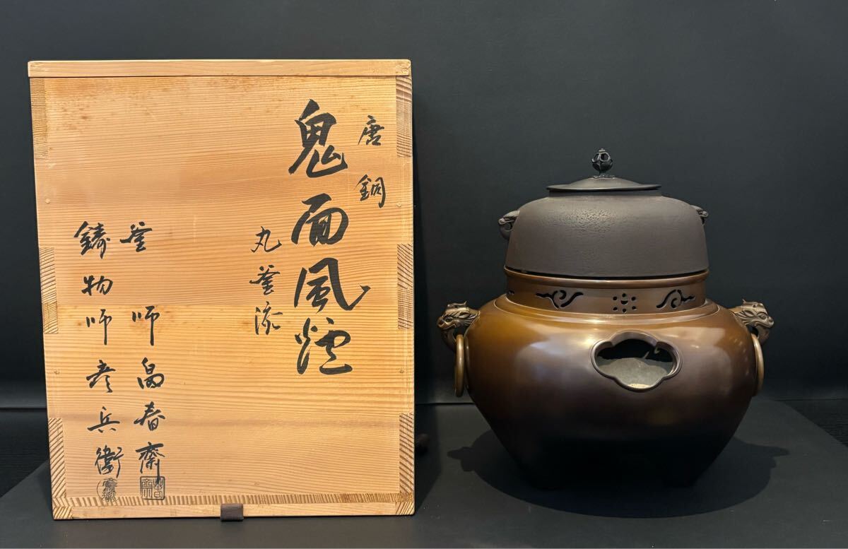 - 唐銅鬼面風炉 丸釜添 風炉 彦兵衛 釜 春斎 灰付き