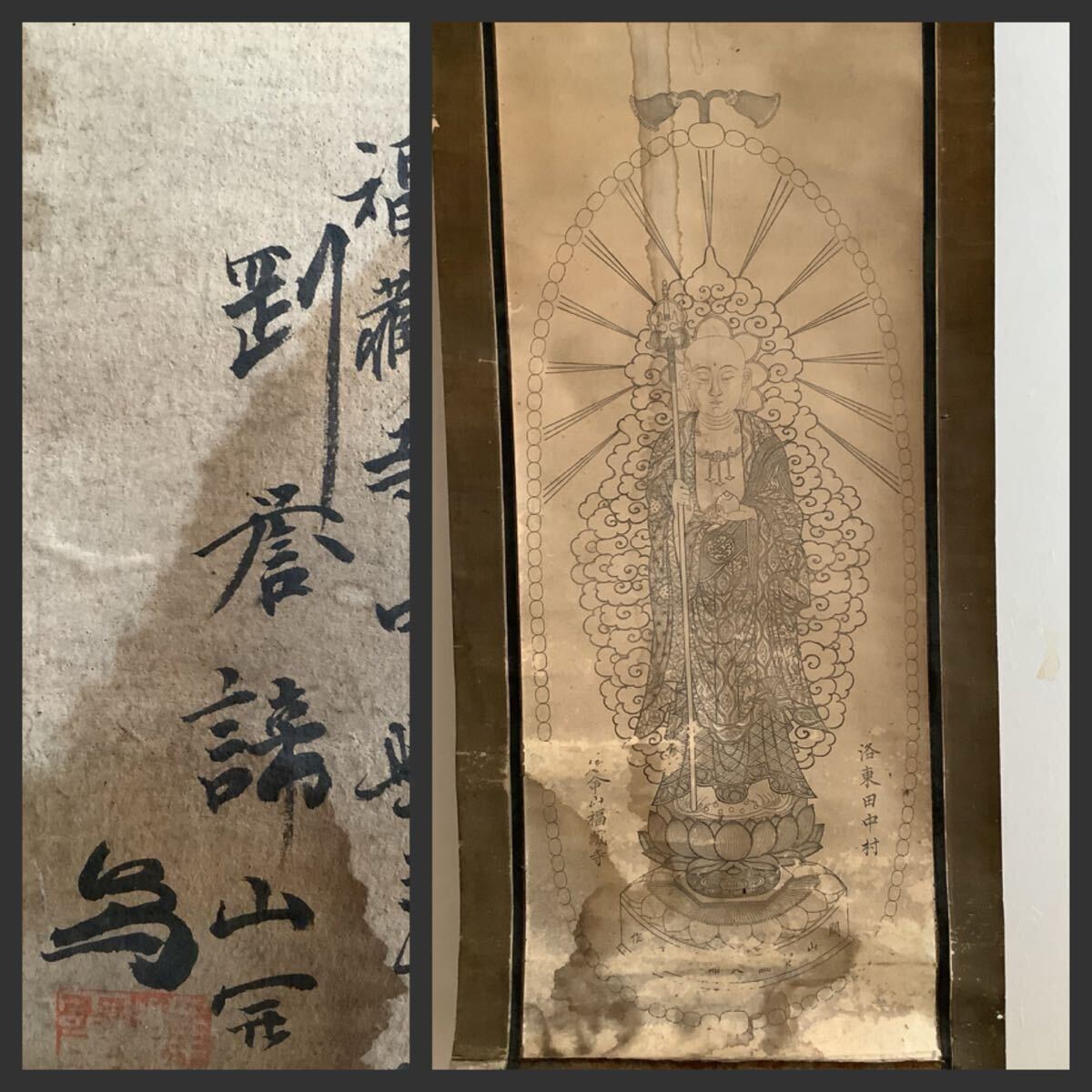 - 【模写】掛軸Jul707[劉誉諦山裏書 地蔵菩薩像]紙本版摺 木版画/仏画 仏教美術 福蔵寺中興三十世 花押印 洛東田中 開山智証大師