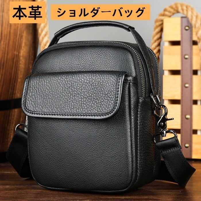- 本革 ショルダーバッグ メンズバッグ レザーバッグ 斜めがけ メッセンジャーバッグ カジュアル 縦型 2WAYバッグ bg0816 ブラック