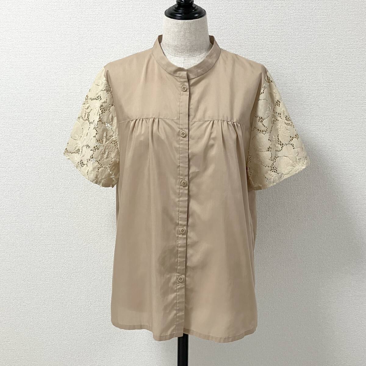 > VIVIENNE TAM 袖レース バンドカラー ギャザー ブラウス ベージュ 40サイズ ヴィヴィアンタム シャツ archive 5060432
