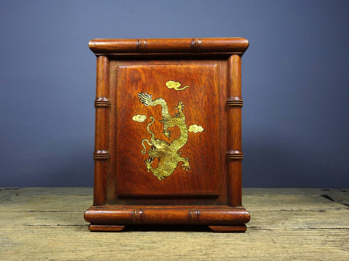 - 『館蔵珍品 花梨木製 細密彫 貝殼嵌 彩繪 龍鳳呈祥紋 筆筒 置物 賞物』稀少珍蔵品 古賞物 貴重物品 収蔵品 中国古美術 時代物 古董品