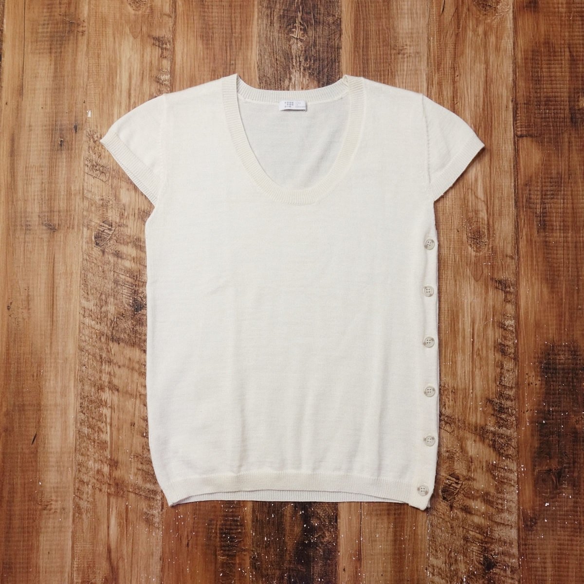 > 美品 LIVE IN COMFORT サイドボタンスリット 半袖ニット レディース ベスト レイヤード フェリシモ Mサイズ アイボリー LH6