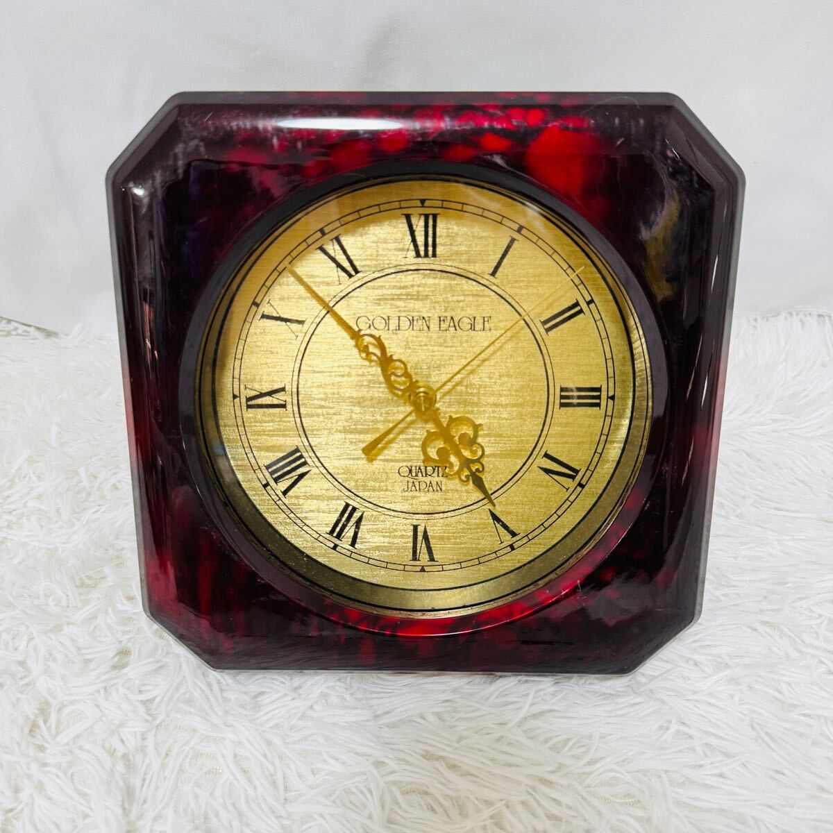 - 昭和レトロ 置き時計 クォーツ式 GOLDEN EAGLE ゴールデンイーグル 日本製 アンティーク調 ビンテージ インテリア 動作品