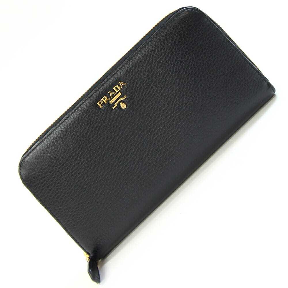 > プラダ ランドファスナー長財布 1ML506 ブラック ゴールド金具 レザー 中古 ロングウォレット ラウンドジップ ロゴ