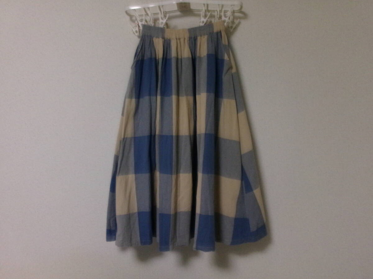 - Samansa Mos2サマンサモスモスSM2☆青ブルー×水色×グレーブロックチェック柄フレアロングスカート☆ナチュラル柔らかコットン素材☆Fsize