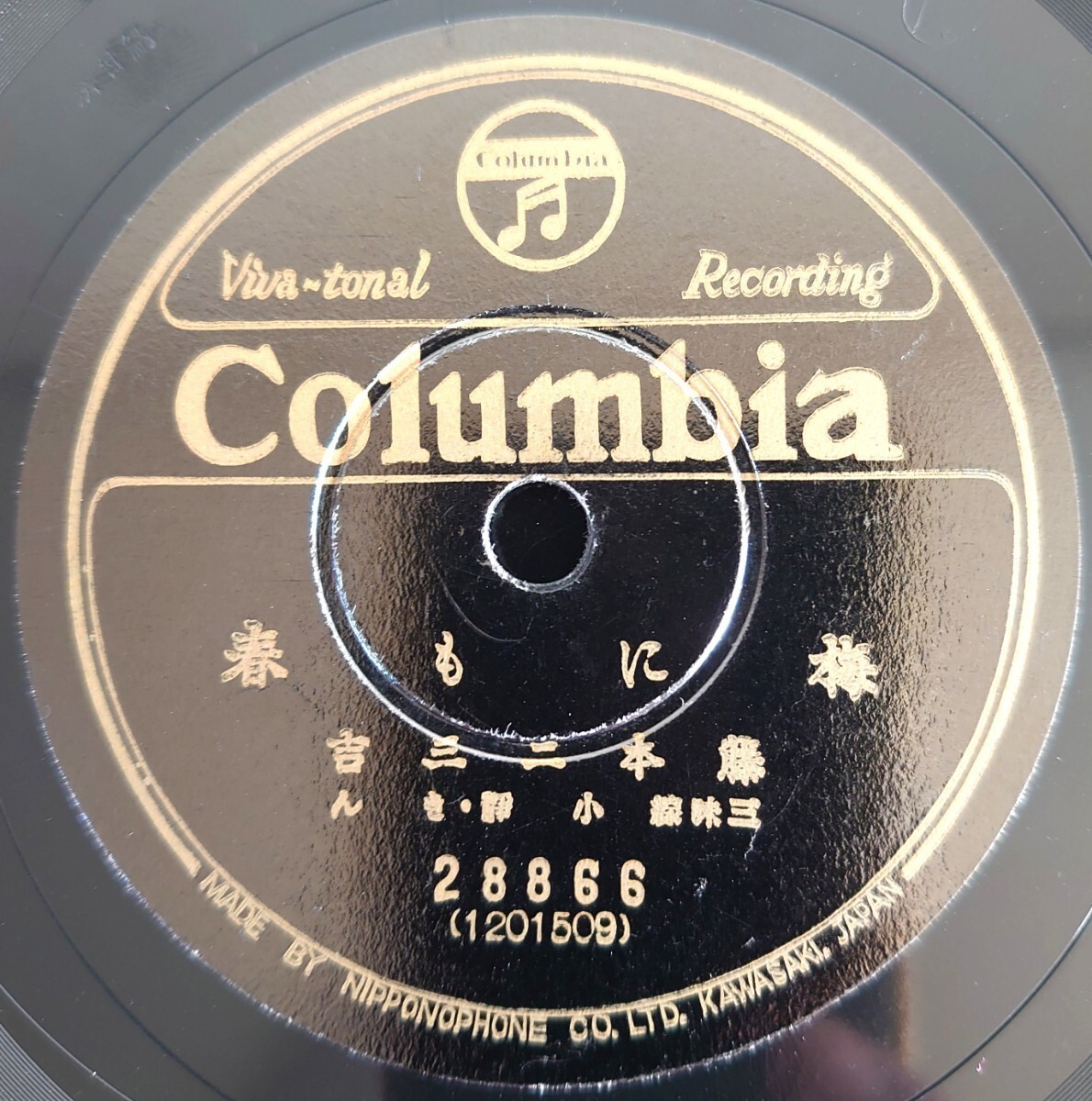 - 【SP盤レコード】Columbia 28866/梅にも春/春雨/藤本二三吉 三味線:小靜・きん