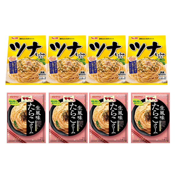 - ■エスビー・ママー ツナしょうゆ風味・たらこクリーム 2種8袋(16食)■パスタソース
