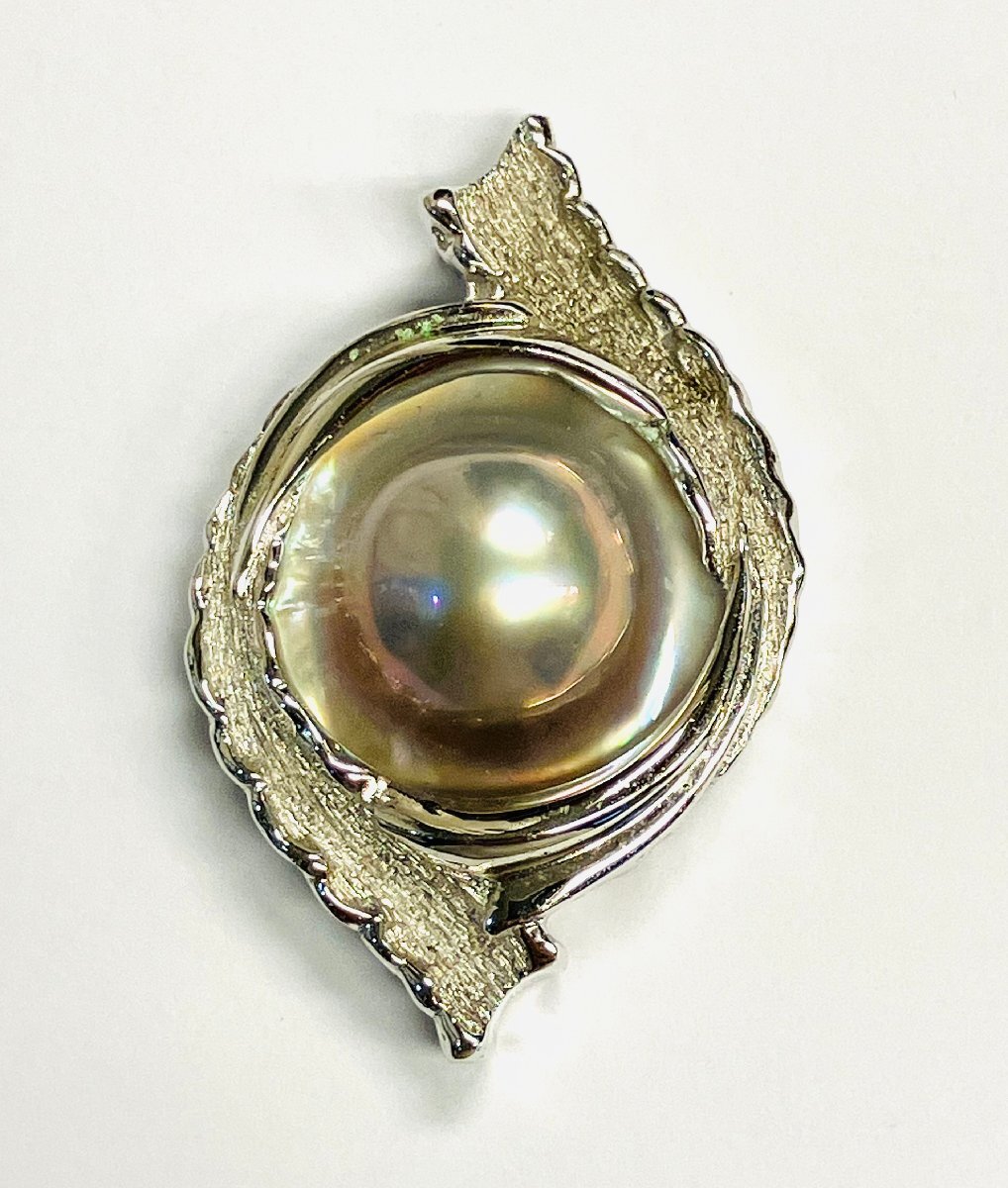 - qoj.ZDE04 SILVER シルバー 半円真珠 マベパール/ピンクグレー ペンダントトップ ソーティング付き