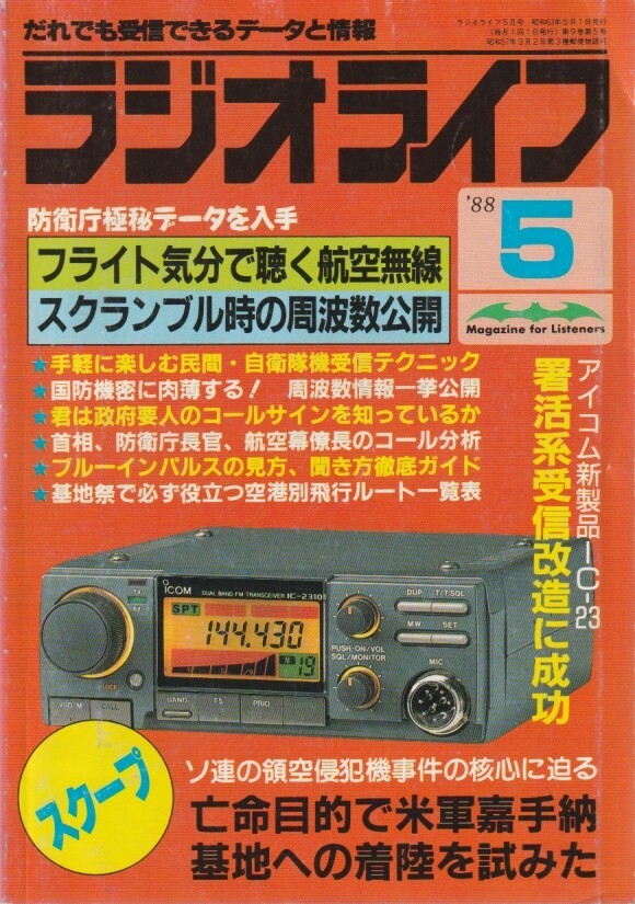 > ラジオライフ 1988年05月号/青函連絡船無線システム/航空無線/民間・自衛隊機受信テク/基地祭空港別飛行ルート/IC-23/山田耕嗣/FRG-965