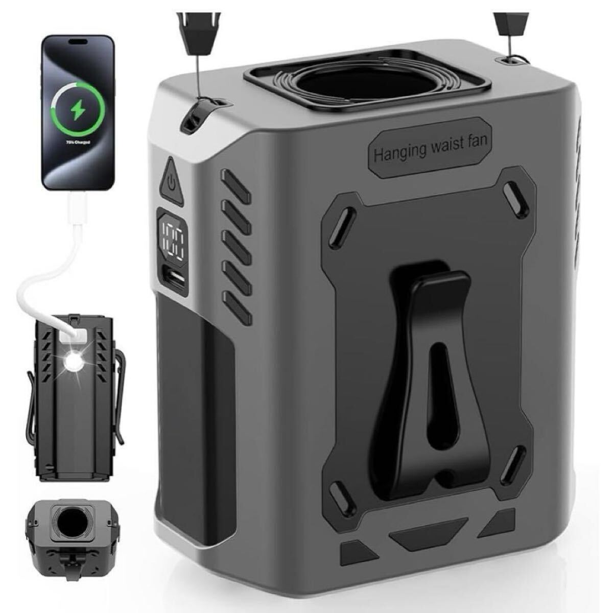- 【グレー】腰掛け扇風機 強力 ベルトファン 1-5風速無段階調整可能