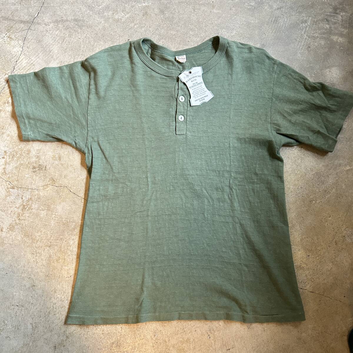 - 試着程度美品 タグ付 WARHOUSE / ウェアハウス 4601 S/S HENLEY NECK TEE ヘンリーネック T メンズ M グリーン MADE IN JAPAN 日本製 USED