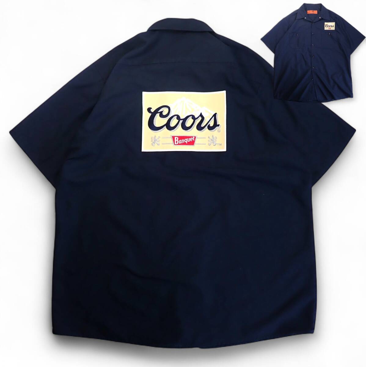 - 6812/RED KAP 半袖 ワークシャツ XL●Coors BEER Banquet クアーズ ビール ビックワッペン●洗濯プレス済●ネコポス可●レッドキャップ古着