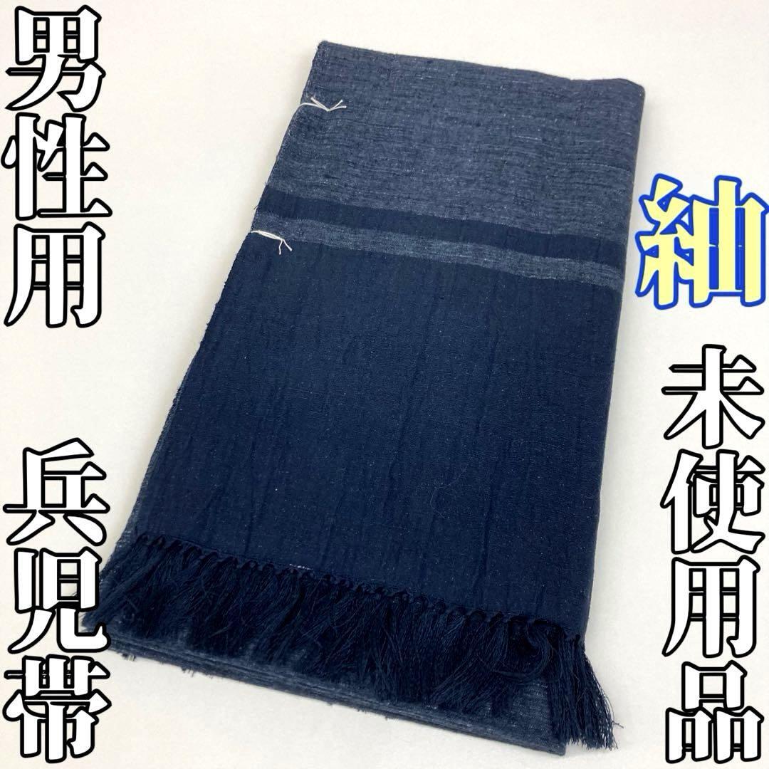 - 【着物と帯 時流】M25845◇正絹 男性用兵児帯◇紬 未使用品 小千谷紬 紺色