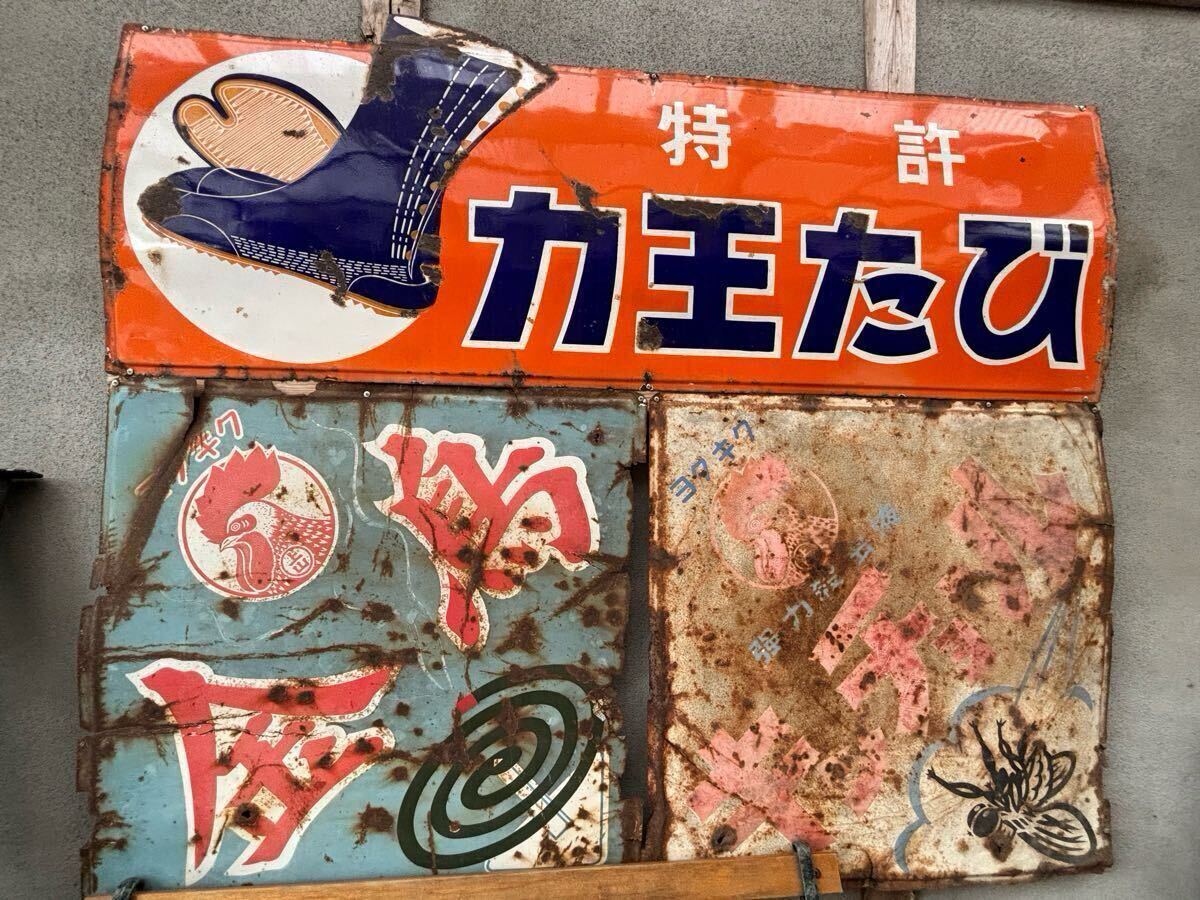 - ホーロー看板 昭和レトロ 当時物 琺瑯看板 琺瑯 力王たび 金鳥 3点セット 引取り限定 発送不可