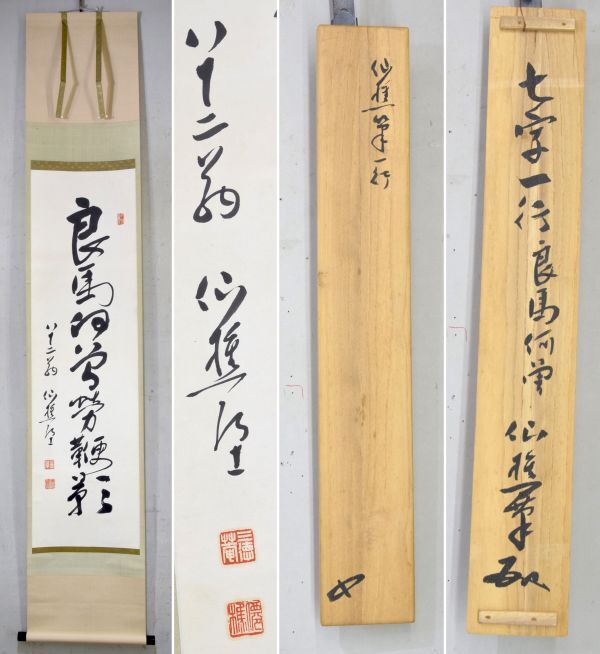- 《真作》田中仙樵「良馬何曽労鞭影」 掛軸 一行書 大日本茶道学会 紙本 共箱 古美術 9161-4555