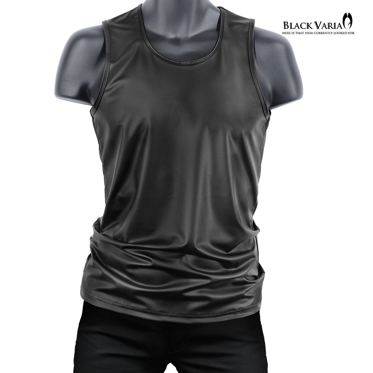 > 233159-bk BLACK VARIA タンクトップ PUレザー 無地 マット 合皮 ストレッチ 細身 タンク メンズ(ブラック黒) L 日本製 送料370円~