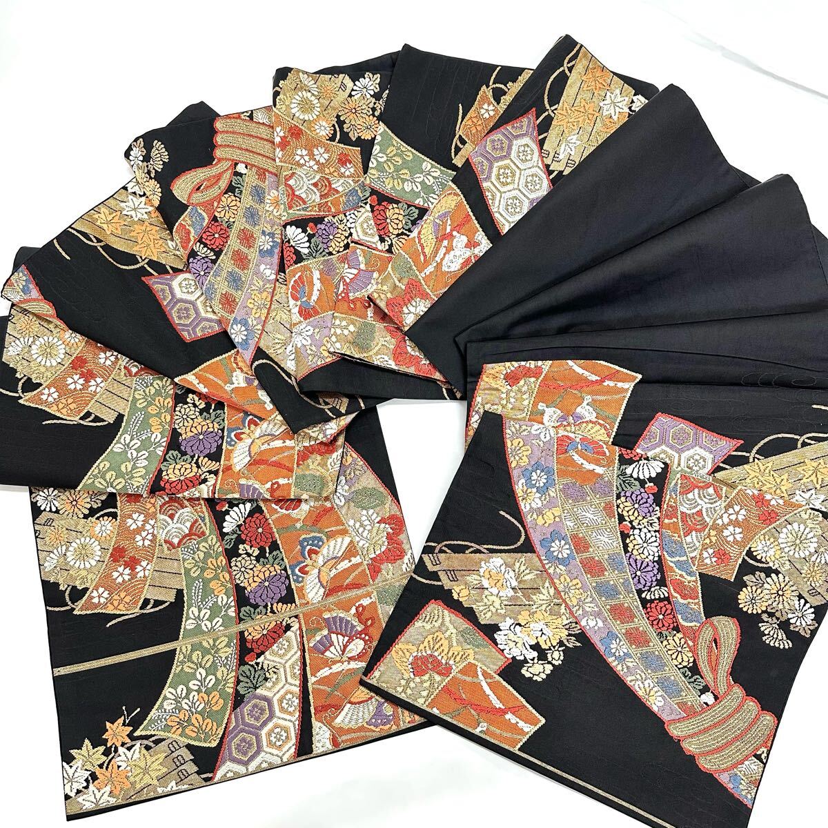 - 【七福】c628 逸品 高級品 正絹 袋帯 六通 吉祥文様 豊公献寿紋 金糸 刺繍 豪華