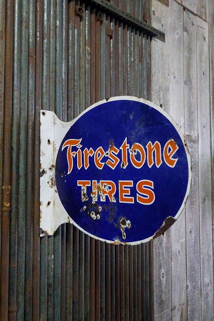 - ビンテージFirestoneホーロー両面看板 [gosa-132]検アメリカUSA1920~30年代オリジナルファイヤーストーンMOTORGASスタンドSHOPサイン