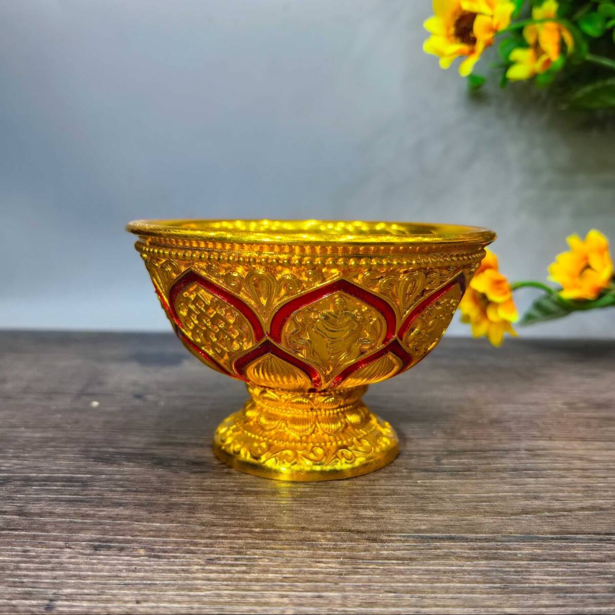 - 蔵友旧蔵出 銅製 塗金 彩繪 八寶紋 供碗 希少珍品 貴重品 置物 古賞物 中国古玩 中国古美術品