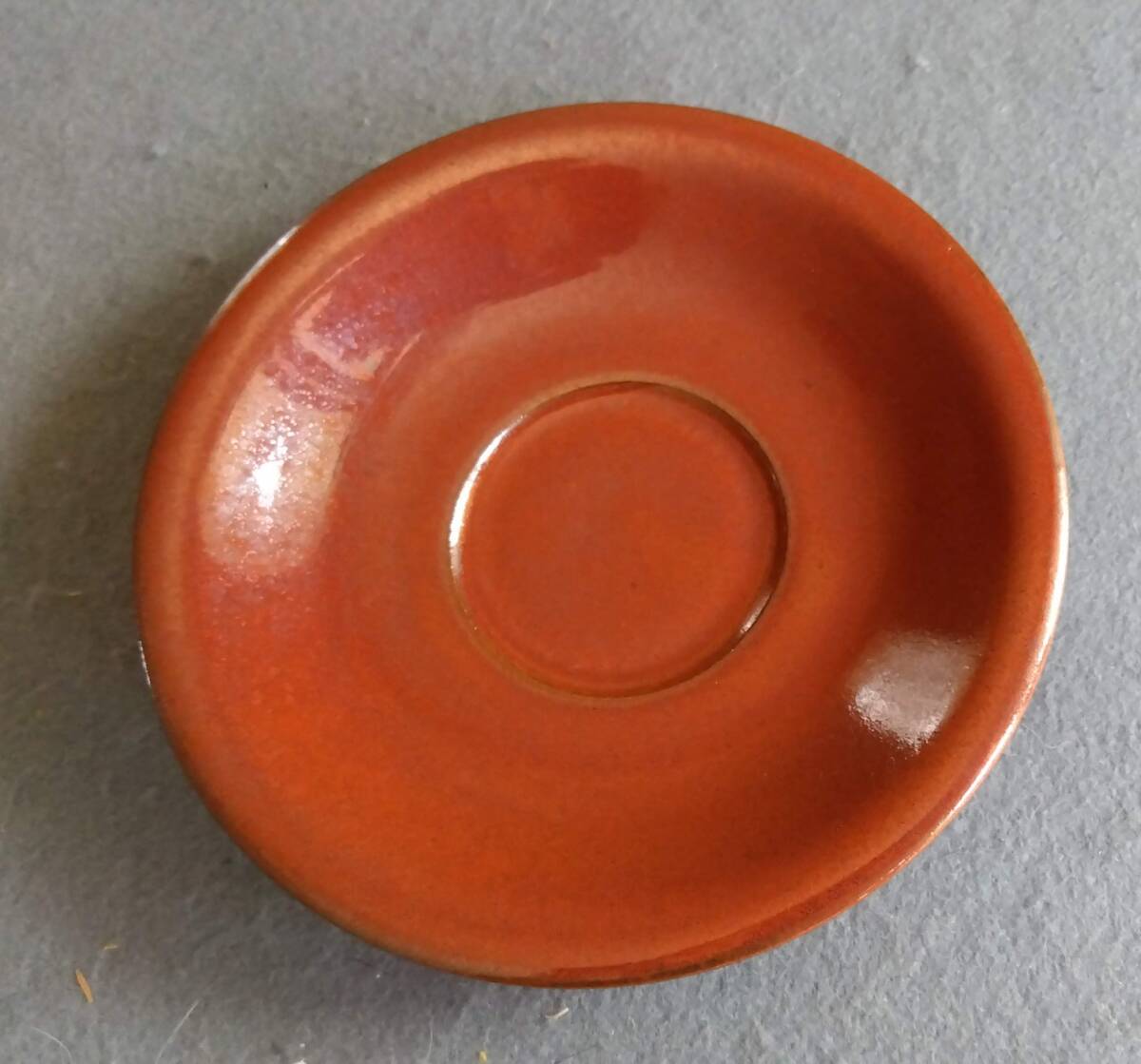- 越前焼名工 中村豊(陶杉窯)極美鉄赤釉茶托 5点セット