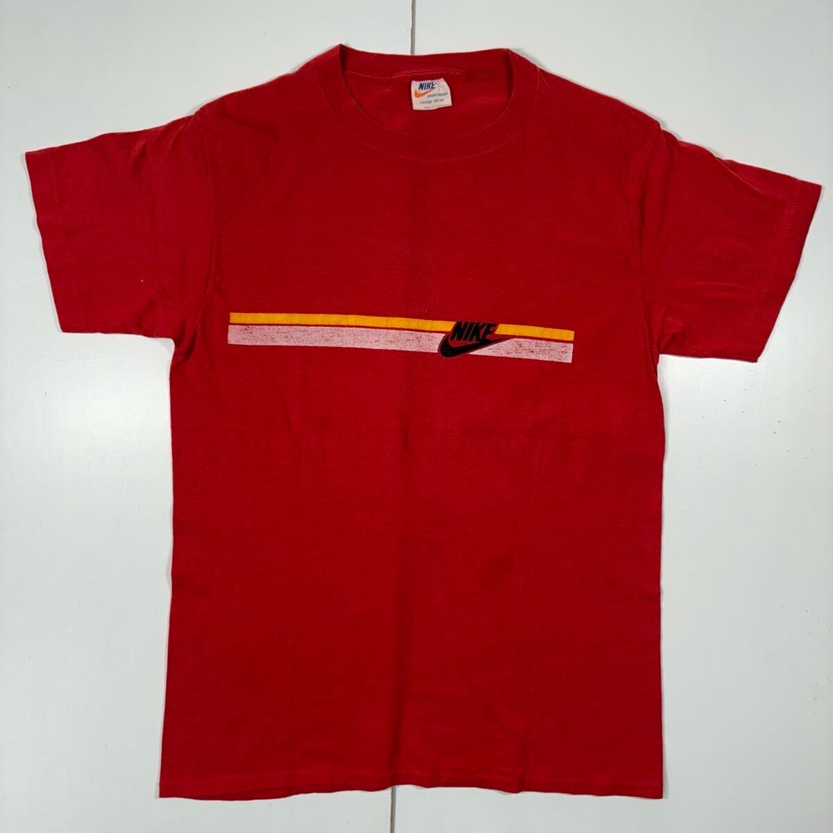 > 【L】70s Vintage NIKE Logo Print Tee Red 70年代 ビンテージ ナイキ ロゴ プリント 半袖 Tシャツ レッド オレンジタグ USA製 T1325
