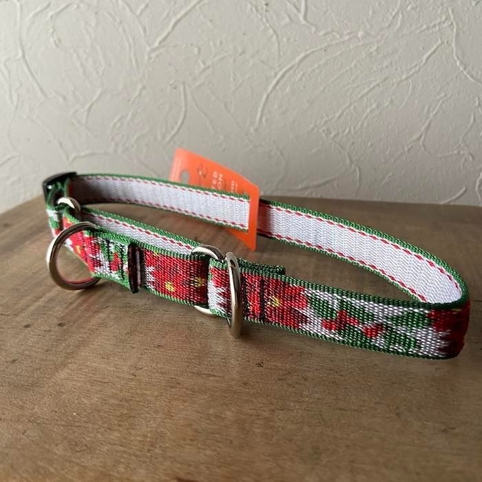 > ハーフチョークカラー・Mサイズ・18mm幅ポインセチア柄34-50cm LUPINEルパイン アメリカ製 軽量 丈夫 中型犬 Poinsettia