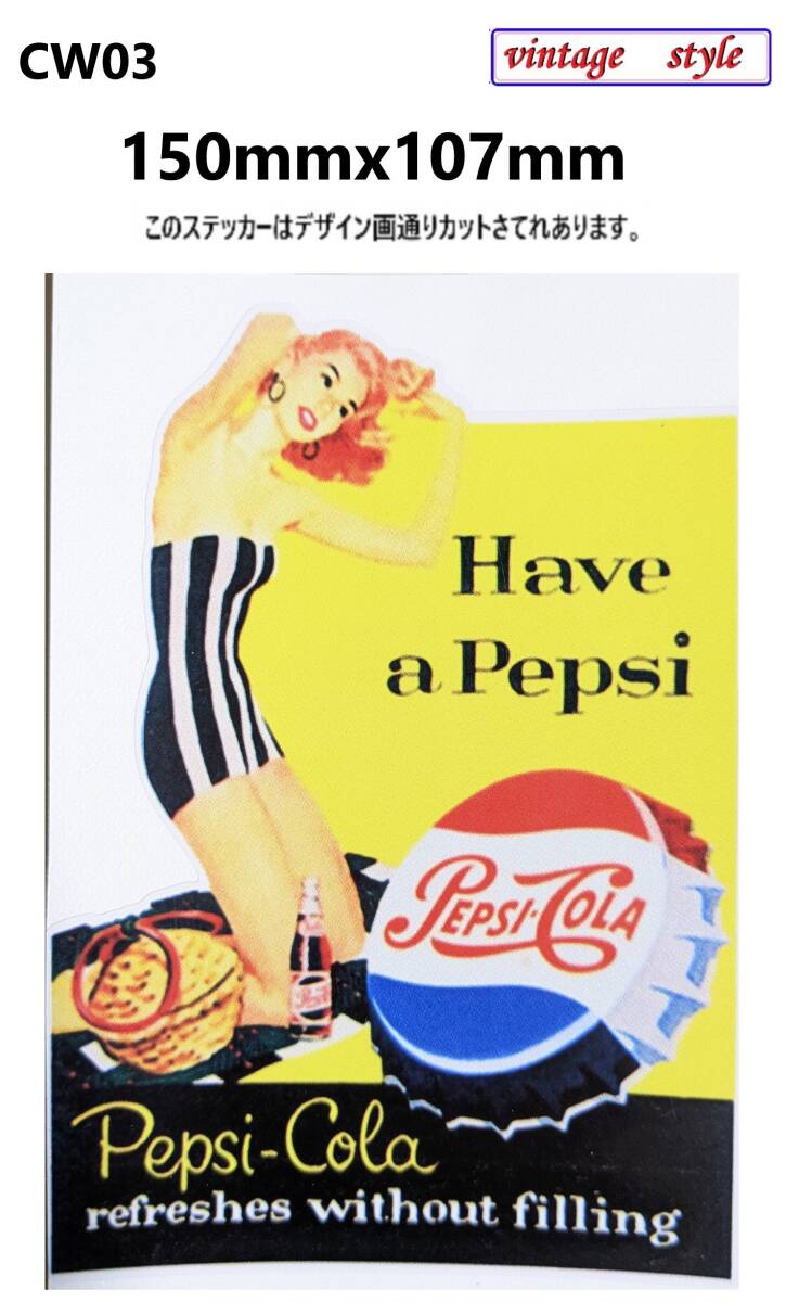 > CW03-04 特価 ヴィンテージスタイル ペプシステッカー PEPSICOLA ステッカー ダメージ加工 レトロ ガレージ カッコいい オシャレ