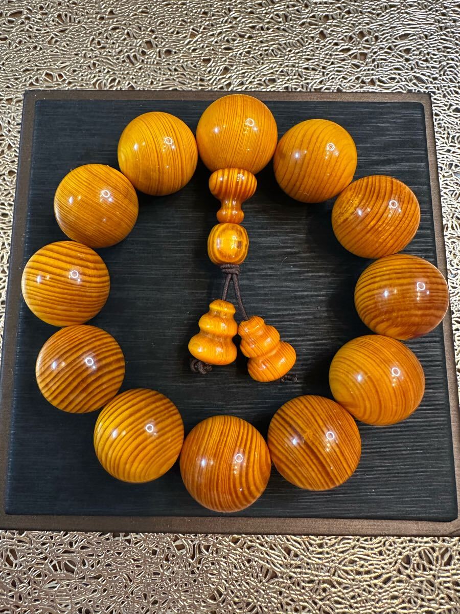 - S-149天然木 高品質 玉化琥珀木 松明子 ブレスレット 数珠 念珠大玉20