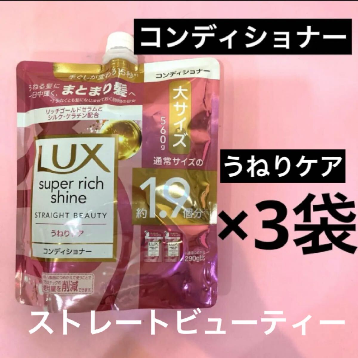- 【コンディショナー3袋】ラックススーパーリッチシャイン ストレートビューティーうねりケア まとまり髪 大サイズ560g 1.9個分 LUX 詰替用