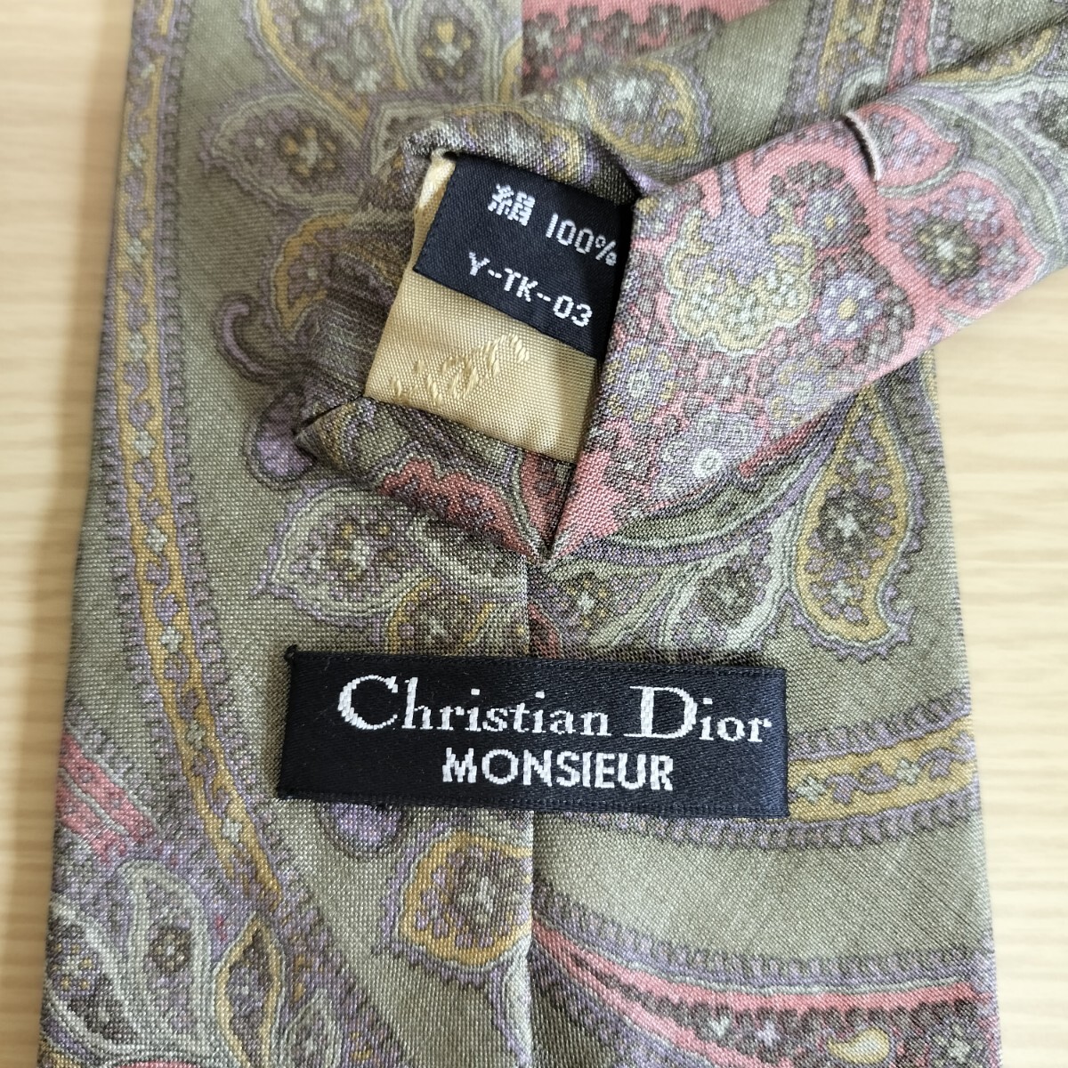 - Christian Dior(クリスチャンディオール)薄緑涙花咲き誇る模様ネクタイ