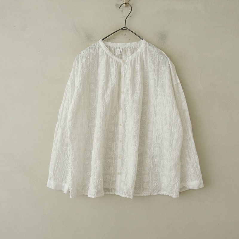 - グリン grin *フラワーっ州コットンブラウス*2オフホワイトシャツエンブロイダリー花柄(33-2505-794)【80G52】