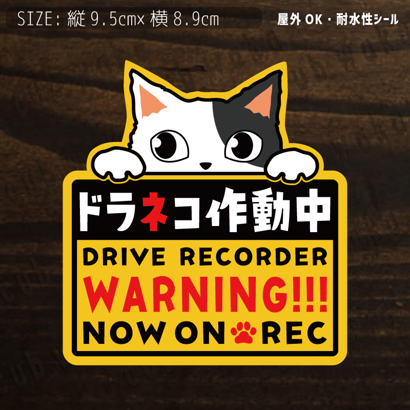 - ドラネコ作動中①ブチ 防水ステッカー シール ドライブレコーダー ドラレコステッカー 猫 車 追突防止 あおり運転防止 0069