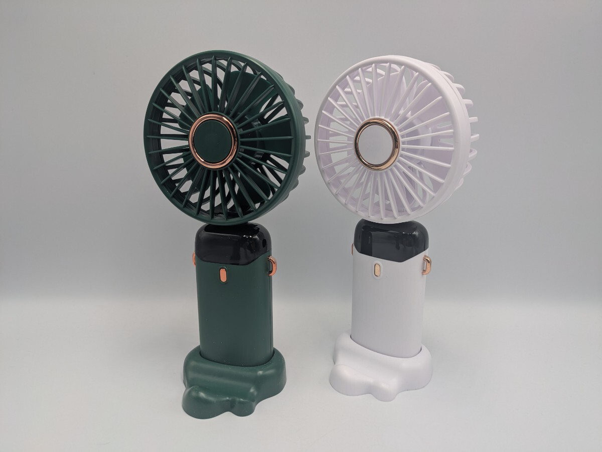- ハンディファン 2色セット グリーン ホワイト 扇風機 屋外 アウトドア 5段階風量調節 ミニ扇風機 ネックファン 携帯扇風機 卓上扇風機