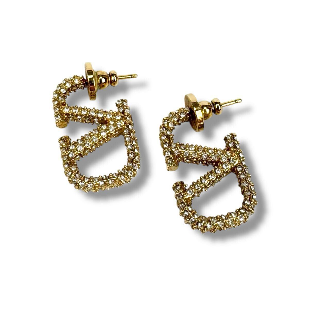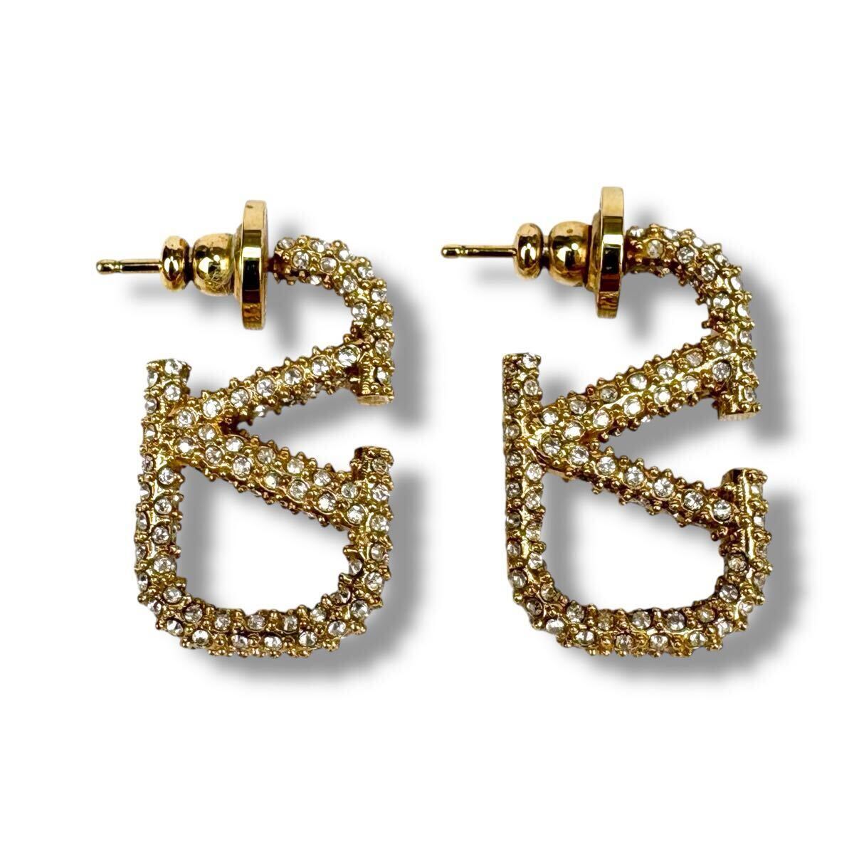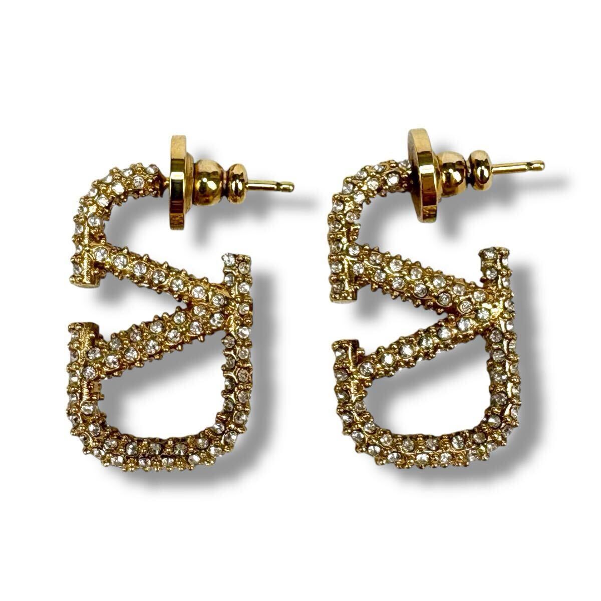 - VALENTINO GARAVANI ヴァレンティノ ガラヴァーニ フープピアス Vロゴ ラインストーン スワロフスキー ビジュー フープ
