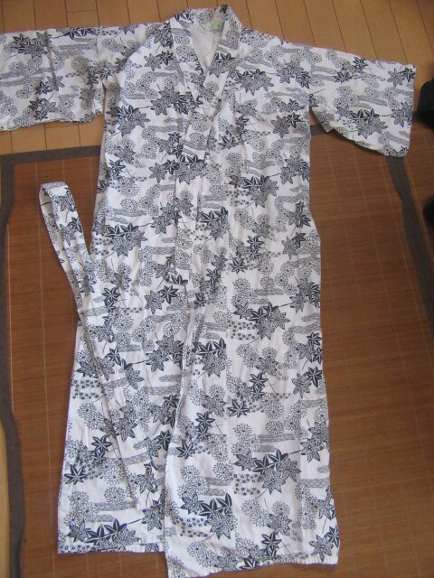 - 美品最高級うぐいす椿介護用寝巻浴衣和式寝衣綿100%Mサイズ看護実習で着用したのみ激安即決80円