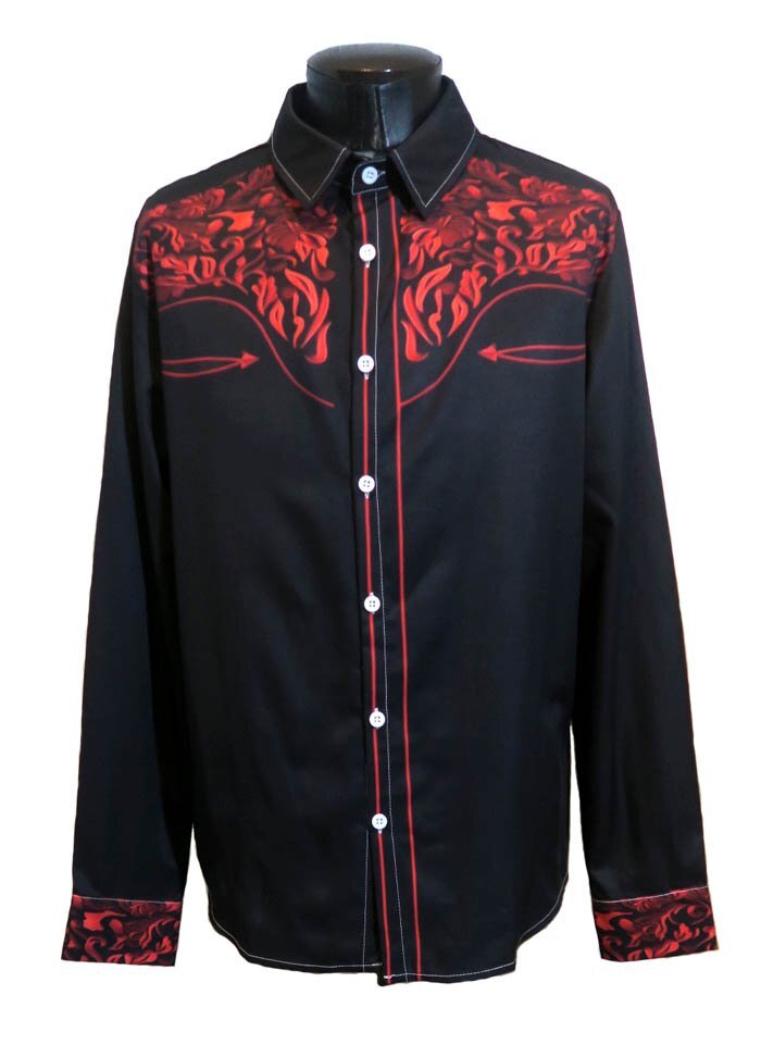 - 新品 XLサイズ ウエスタンシャツ 黒 赤 1255 メンズ 柄シャツ レッド 海外 花柄 カウボーイ ロカビリー ロック モード ヴィジュアル系