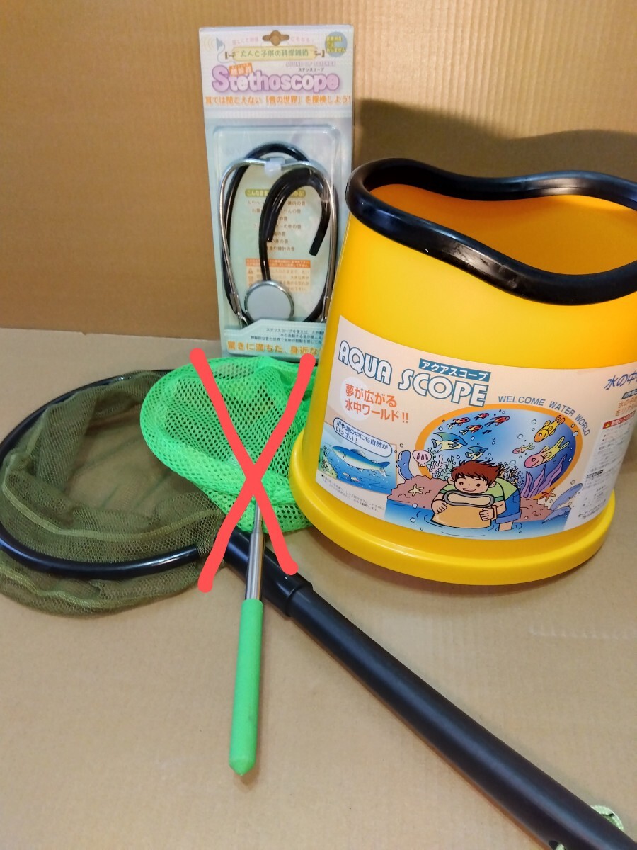 - アクアスコープ 箱メガネ (新品)オマケ 折りたたみ網 1個 ステソスコープ 海水浴グッズ 磯遊び 水中メガネ 川遊び
