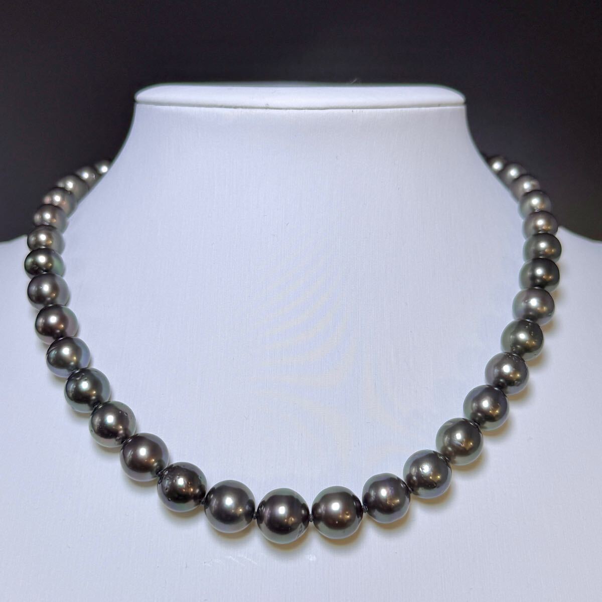 > 照り◎ 黒蝶真珠 ネックレス 7.9〜11.8㎜ 47㎝ 60.2g 南洋パール アクセサリー クロチョウ グラジュエーション