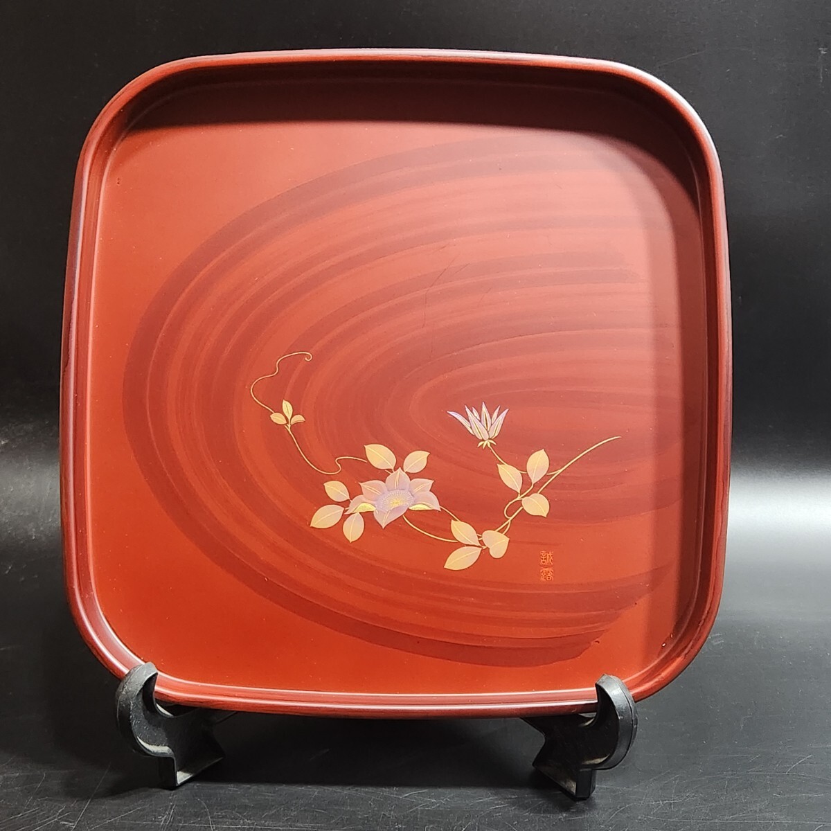 - M86 角盆 蒔絵 合成漆器 伝統工芸 お盆 木製漆器 レトロ 和雑貨 未使用品 30cn