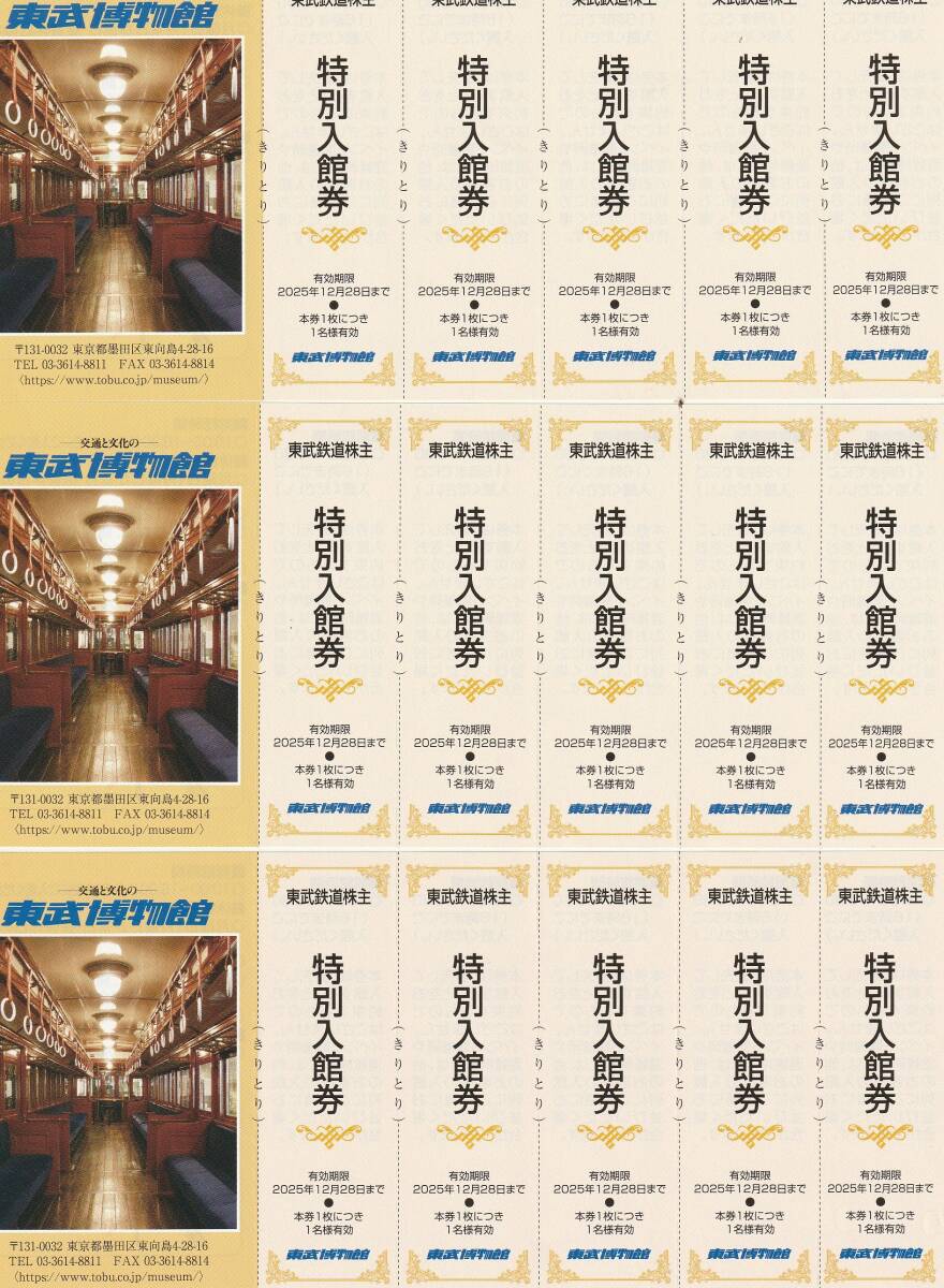 - 東武鉄道★株主優待券★東武博物館★特別入館券★15枚★送料85円~★即決