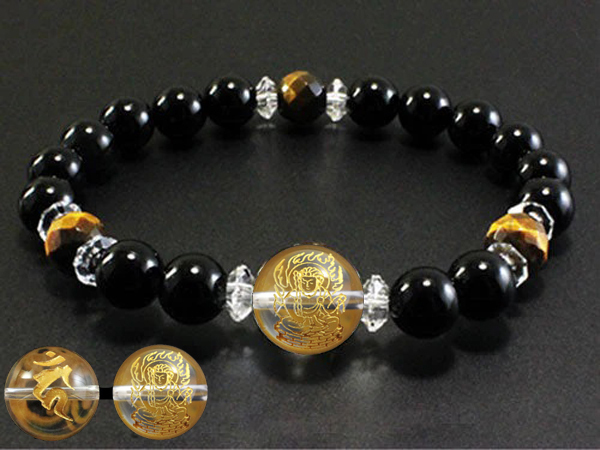 - オニキス「不動明王様と梵字」のブレスレット19.5cm
